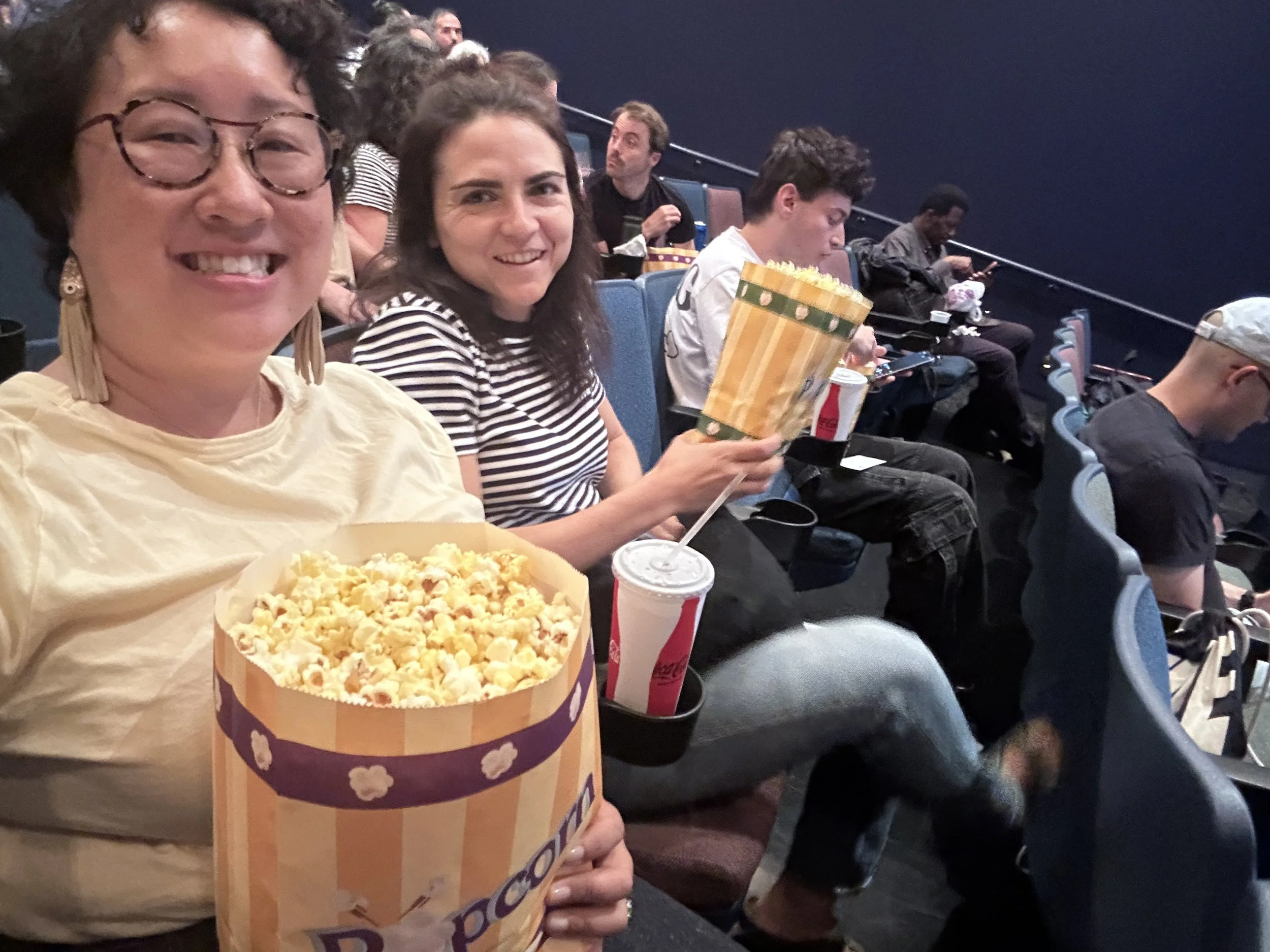 Meet Your Hosts Charlene (L) and Jackie (R) next to the butter machine at The Angelika Charlene (L) and Jackie (R) ready to go at a BAM screening Jackie (L) and Charlene (R) at the Alamo Drafthouse Brooklyn We met while working in New York City’s film and tv production industry. Jackie’s IMDB | Charlene’s IMDBWe both love watching movies and discussing them afterwardsJackie’s Letterboxed | Charlene’s Letterboxd